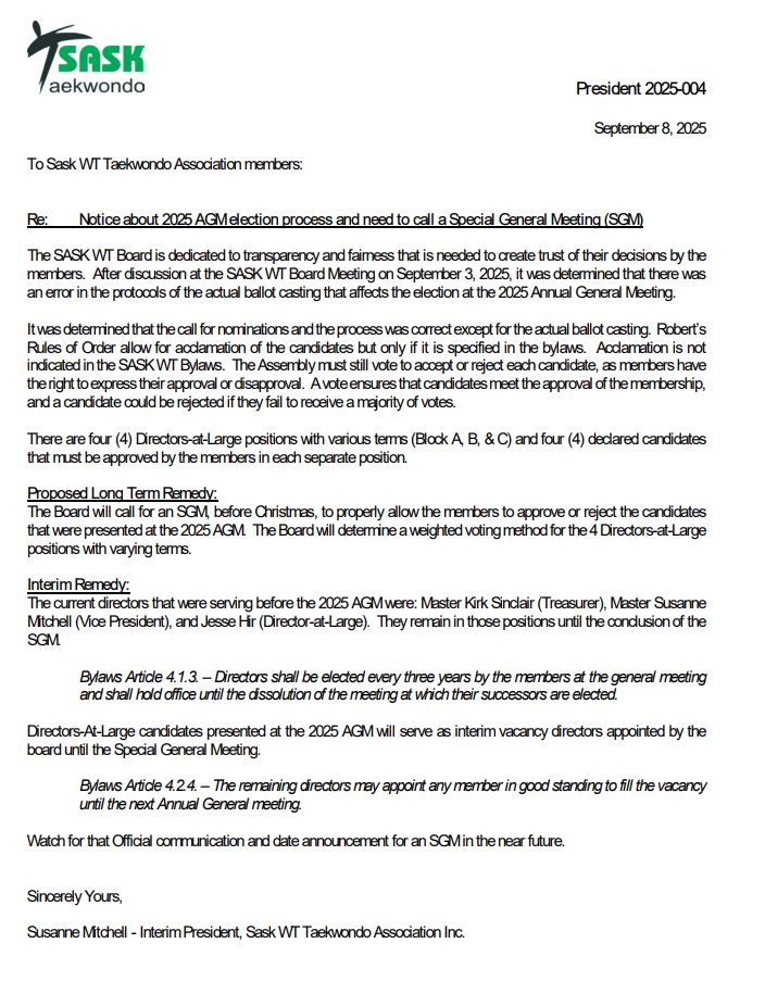 Special General Meeting Announcement